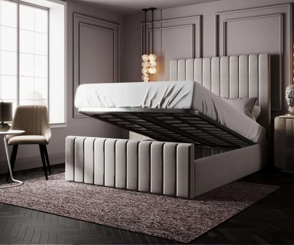 The standout winged headboard, lined with subtle stripe detailing, brings refined character and visual appeal. The ottoman version includes a spacious gas-lift storage compartment—ideal for keeping your bedroom organised and clutter-free. Easily accessed by lifting the bed, this hidden space offers ample room for larger items while maintaining a sleek, seamless finish.